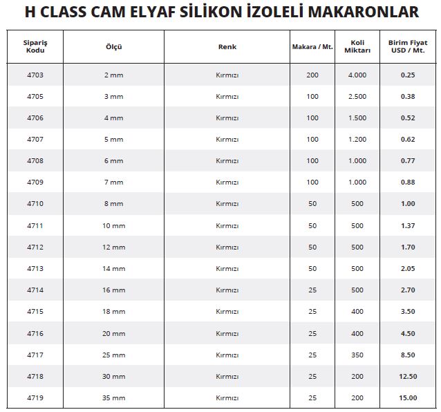 6 MM H CLASS MAKARON WOER Silikon İzoleli Cam Elyaf Örgü Makaron